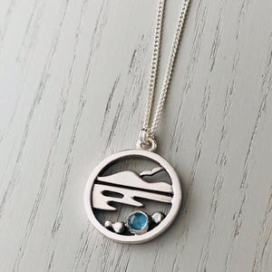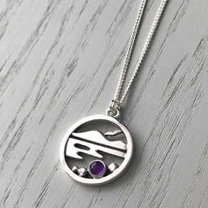 This stunning sterling silver pendant is hand crafted in the Orkney Islands of Scotland, by Celina Rupp Jewellery and set with a choice of Amethyst or Blue Topaz cabochon cut gemstones.