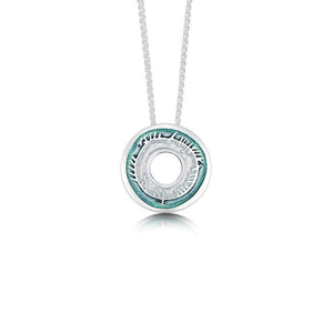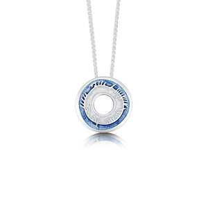 This striking sterling silver and enamel pendant was inspired by the first-known text discovered in Orkney. The Ogham writing on this pendant contains the hidden message 'a blessing on the soul'. This pendant is available in a selection of three appealing enamel colours. (Pictured in twilight blue enamel)