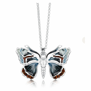 This is a striking pendant that is part of Sheila Fleet's Butterfly collection, inspired by the many butterflies surrounding Sheila's workshop. A lovely red admiralbutterfly shaped sterling silver necklace with a two tone blue enamel on each of the rings.