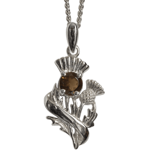 This Scottish thistle is made by Cairn jewellery using beautifully textured sterling silver and a beautiful stone of your choosing. The piece is a wonderful twist on the traditional flower of Scotland.