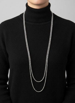 necklace from our fashion jewellery collection. Each of the two strands strands is filled with silver coloured and heamatite coloured beads.