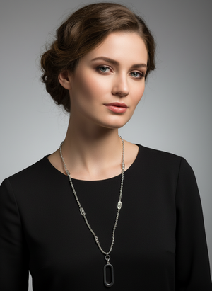 A stunning long silver coloured chain from our fashion jewellery section .Affordable and stunning on top of a dress or sweater.