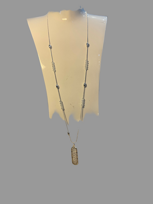A stunning long fine silver coloured chain set with crystals and silver coloured beads from our fashion jewellery section .Affordable and stunning on top of a dress or sweater.
