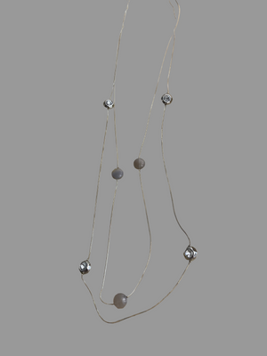 A stunning long silver coloured double chain set with big crystals from our fashion jewellery section .Affordable and stunning on top of a dress or sweater.