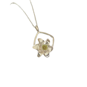This exquisite daffodil pendant represents a masterful collaboration between Ortak and Marie Curie, combining traditional craftsmanship with contemporary design sensibilities. Each piece is meticulously hand-crafted from sterling silver, ensuring durability and lasting lustre. The hand-painted enamel detailing captures the delicate beauty of the daffodil bloom with remarkable precision, showcasing subtle colour gradations and artistic finesse that distinguish it from mass-produced alternatives. The pendant's refined proportions make it versatile enough for everyday wear whilst remaining distinctive enough to serve as a meaningful statement piece. As part of a curated collection, this design reflects Ortak's commitment to quality artisanal jewellery. The combination of precious metal and skilled enamelling techniques ensures this pendant will become a cherished addition to any jewellery collection, offering both aesthetic appeal and enduring value.
