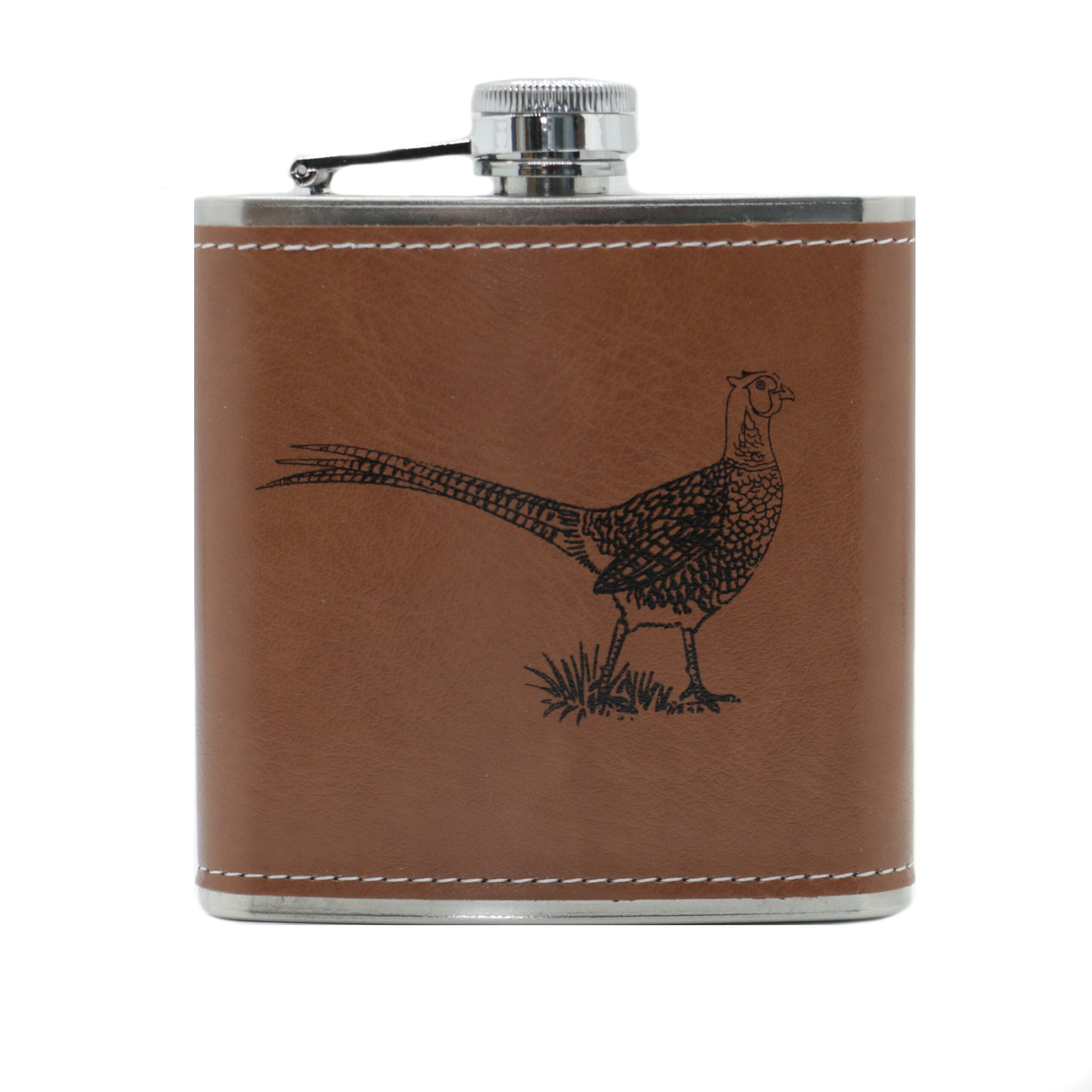 Crafted from premium stainless steel and wrapped in a rich, leatherette cover, this 6oz hip flask combines classic style with countryside charm. The engraved pheasant design adds a refined, outdoors-inspired touch—perfect for gifting to shooting enthusiasts, countryside lovers, or anyone who appreciates timeless accessories. Its compact size makes it ideal for carrying your favourite spirits on the go, while the secure screw-top lid ensures no spills. Durable, stylish, and practical, this hip flask is a must-have companion for any adventure.