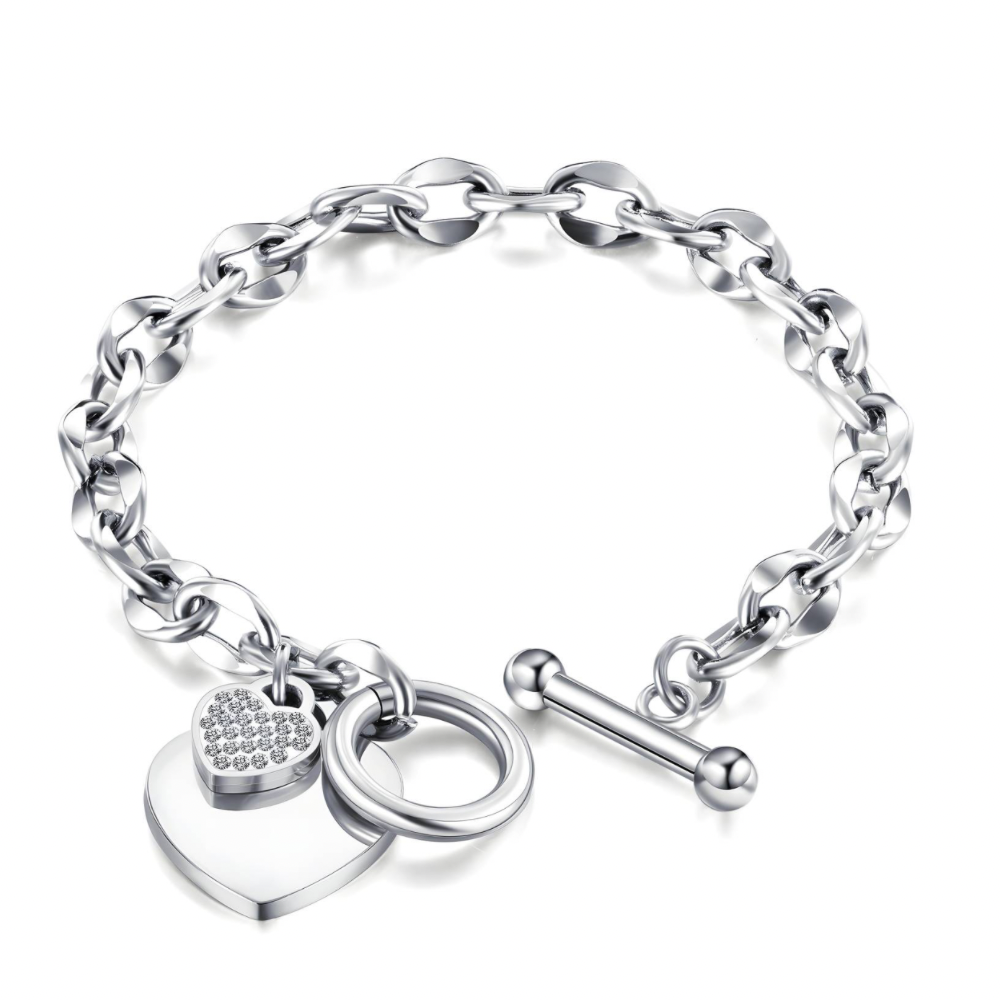 bracelet made from stainless steel is hard wearing, tarnish free, waterproof. Versatile durable and todays up to date styling make this a jewellery piece to grab attention this season.