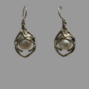 These magnificent earrings are made from highly polished sterling silver by the designer Hagit Gorali, the piece features silver drops with freshwater pearls and has a necklace to match.