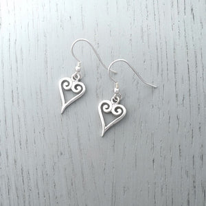 Inspired by the ornate decorations on Viking longships, Celina Rupp has crafted these stunning viking heart earrings from sterling silver. Handcrafted in Scotland, these gorgeous earrings take the form of an ornate yet simple heart that dangles from hook earring fittings.