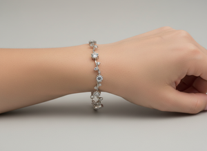 A pretty, hand made, sterling silver, designer bracelet, set with blue zirconia gemstones.