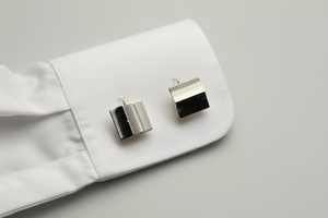 An attractive and elaborate pair of sterling silver cufflinks, decorated with a crease design and a stud back for easy fastening.