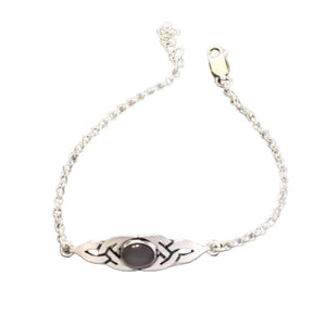 Discover the timeless allure of Celtic craftsmanship with this stunning bracelet, handcrafted in Orkney by the renowned Celina Rupp Jewellery. Each piece draws inspiration from the rich Celtic heritage woven throughout Orkney's landscape, bringing ancient artistry into your modern wardrobe. At the heart of this bracelet lies a carefully selected gemstone, chosen to reflect your personal style and energy. Select from six captivating options: warm Amber for radiance, serene Amethyst for calm, mysterious Black Moonstone for depth, classic Black Onyx for elegance, passionate Garnet for vitality, or ethereal Moonstone for balance. Whether you're drawn to bold statement pieces or subtle sophistication, this bracelet adapts to your aesthetic. Perfect for stacking with other pieces or worn as a standalone treasure, this Celtic bracelet combines authentic artisanal quality with versatile design. Invest in a piece that honours ancient tradition whilst elevating your everyday jewellery collection.