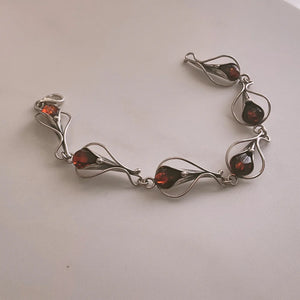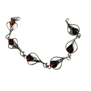 A Stunning Sterling Silver Bracelet with Teardrop Amber Stones