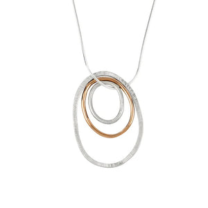 A gorgeous pendant crafted by Aurora Jewellery in Orkney, Scotland, where traditional craftsmanship meets contemporary design. Created by designer Kirsteen Stewart, this striking piece draws inspiration from the four elements—air, earth, fire, and water—each symbolizing different aspects of nature and life. The elegant trio pendant combines sterling silver with rose gold accents, offering versatile styling options that complement any wardrobe. Whether worn alone as a statement piece or layered with other pendants, this Scottish-made treasure brings meaningful symbolism and refined beauty to your everyday look. A perfect gift for those who appreciate artisanal jewelry with deeper significance.