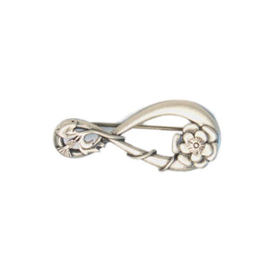 Sterling silver brooch from the Outlander Eternally Yours Collection, beautifully combining the Scottish Thistle and English Rose, mounted on an infinity loop.