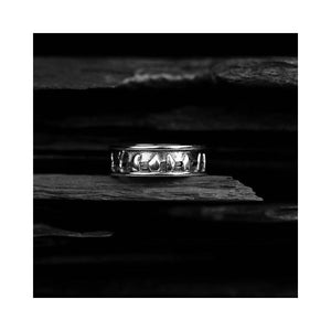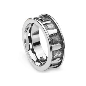 This amazing ring design is inspired by the ancient and famous ring of Brodgar stone circle which can be seen in Orkney. This design is 7 mm wide and features small standing stones right round the band with an oxidised background.