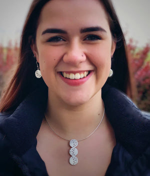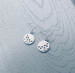 These drop earrings are inspired by the gentle bird tracks left in the sand, marking the path toward the sea with each first step along the beach.