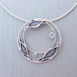 This beautiful large pendant is hand crafted by Celina Rupp in Orkney, Scotland. This unique collection is inspired by the magical and mythical creature of the Selkie. This gorgeous piece can be finished with lovely aquamarine gemstones.
