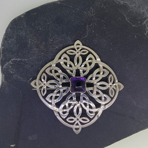 Diamond Shape Silver Celtic Brooch Set with Amethyst - Lockdown