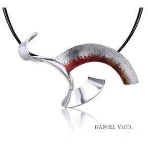 These elegant necklaces are handcrafted in Barcelona by the Spanish designer Daniel Vior using sterling silver or gold plating with beautiful red enamel, the piece is unique with its quirky look.