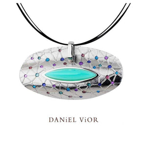 These outstandingly beautiful necklaces are handcrafted in Barcelona by the Spanish designer Daniel Vior using sterling silver with either turkish agate or onyx. The necklaces are unique in their design and stand out with their elegance.
