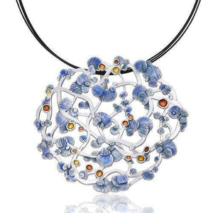 This mesmorising neck piece from Daniel Vior's Calicaos collection is made by hand from rhodium plated sterling silver. The vibrant blue enamel work is hand-painted and the colours are certainly awe-inspiring.