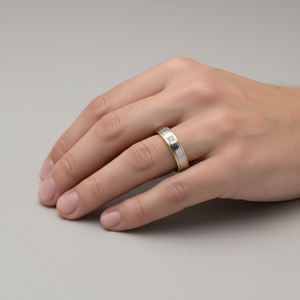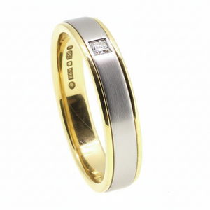 This is a lovely gents 18 carat yellow and white gold diamond wedding ring is set with a princess cut diamond totaling 0.15ct.