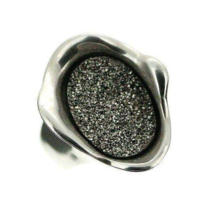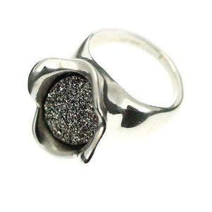 An unusual design from Hagit Gorali, organic in style and handmade in sterling silver, with a large sparkly drusy quartz stone.