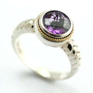 A striking, hand-crafted designer ring from Effy, made in sterling silver and 18 carat gold, this ring is set with a vibrant, round brilliant cut blue topaz or amethyst gemstone.