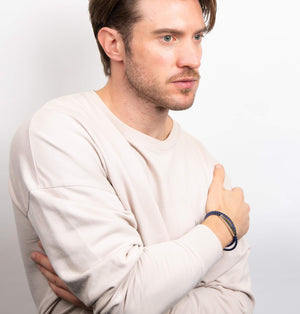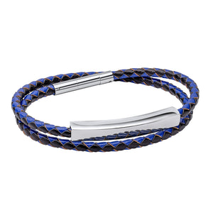 Crafted by Fred Bennett in the uk, this leather double wrap is a wonderful contemporary addition to your collection. This bracelet is made of woven blue and black leather in two strands, and the bracelet is fitted with a steel clasp.