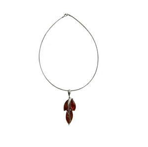 This stunning contemporary pendant is perfect for nature lovers. Handcrafted from sterling silver and featuring vibrant cognac amber stones set in a delicate leaf design, it’s a true statement piece.