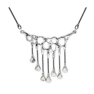 This exquisite necklace is made by the designer Hagit Gorali from highly polished sterling silver. The magnificent piece features silver drops hanging down to make a lovely piece of jewellery. There are also earrings to match.