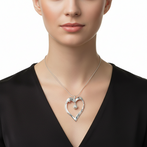 This is a beautiful, highly polished designer necklace, which is hand made by Hagit Gorali and set with a perfect cultured white pearl incorporated in this gorgeous open heart design.