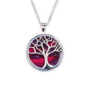 • This stunning pendant is made of sterling silver and comes on a 18 inch silver chain. It features a beautiful tree of life design set with a wonderfully handcrafted natural heather centre with vibrant colours. This pendant is unique as no two heather pieces will ever be the same.
