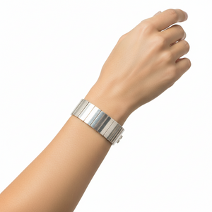 A beautiful bracelet, handcrafted from sterling silver in Israel. The bracelet is made up of silver hammered rectangles linked together.