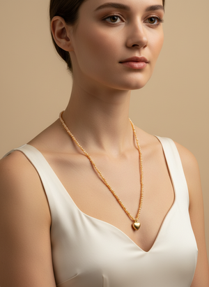 A stylish elasticated bracelet in our fashion jewellery collection. The bracelet is made up of one long strands of pearl like beads, which is finished with a lovely rose coloured heart charm. The correct colour is more like the one on the wrist.