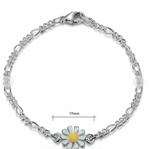 • This superb floral daisy bracelet design is hand crafted from sterling silver and features lovely hand painted enamel, made up of four pretty daisies joining together with a linked chain.