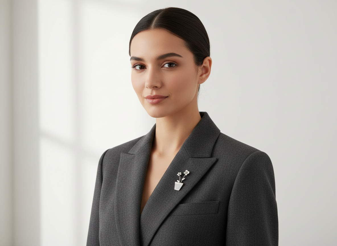 This cute novelty flower pot brooch is made by Hagit Gorali using sterling silver , the beautiful piece is perfect for any coat or jacket Add a touch of elegance to any outfit with this stunning sterling silver flowerpot brooch designed by expert jeweler Hagit Gorali. The intricate details and high-quality craftsmanship make it a versatile accessory for any occasion..