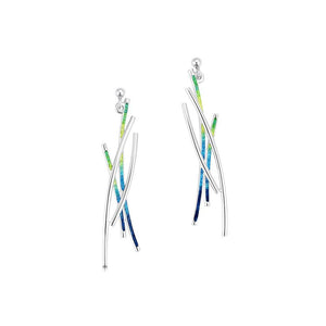 A stunning pair of sterling silver and enamel drop earrings from Sheila Fleet's Wild Grasses collection. This collection is inspired by the marram grasses found at the shores of Northern Scotland and Orkney.