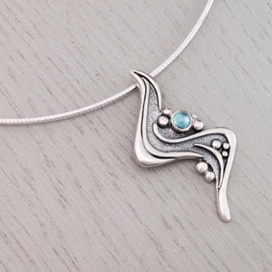 This unique sterling silver necklet is hand crafted in the Orkney Islands of Scotland, by Celina Rupp Jewellery and set with a Swiss Blue Topaz, inspired by the twisting burns found in between the mountains of the Highlands.