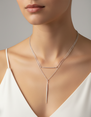 Add a touch of elegance to your ensemble with our silver necklace. Crafted from high-quality sterling silver, this delicate piece features intricately ovals resting on a trigger clasp. Perfect for any occasion, this necklace brings a touch of class to your style.