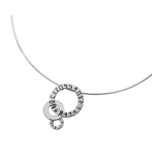 A stunning runic circle necklet, with runes carved into the necklace, meaning "health and happiness" in the largest circle and "love" engraved in the smallest circle. This beautiful necklet is crafted by Aurora Jewellery in Orkney, Scotland and is available in sterling silver or silver with gold detailing.