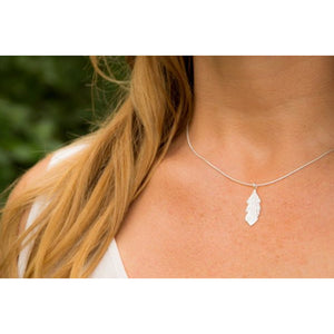 This gorgeous little feather pendant is handcrafted by Rebecca Jewellery in Kinross, Scotland. Made from sterling silver, this lovely mini feather can be engraved with 8 characters on the back of the pendant