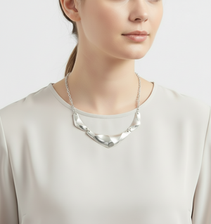 • A stunning short silver coloured necklace from our fashion jewellery section .Affordable and stunning on top of a dress or sweater.