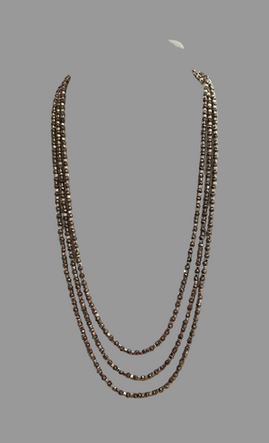 • A lovely copper coloured necklace from our fashion jewellery collection. Each of the three strands is filled with copper coloured beads.
