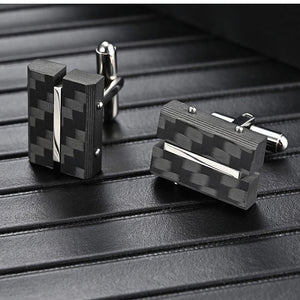 These unusual rectangular Black Carbon Fibre Stainless Steel Cufflinks are perfect for any outfit. Crafted from high-quality stainless steel and coated with a layer of black carbon fibre with silver colour detail in the centre, they're sure to stand out with their unusual contemporary style.