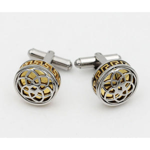 These stainless steel Round Cufflinks offer a chic, polished look with intricate Gold Colour Greek Key design at the sides, perfect for the sophisticated gentleman. Timeless and timelessly elegant, they are sure to elevate any look, giving you a touch of luxury style.