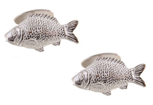 "Add a splash of personality to your wardrobe with these playful Sterling Silver Fish Cufflinks. Made with sterling silver, these cufflinks are sure to make a statement and add a touch of quirkiness to any outfit. Perfect for the fun-loving and stylish individual."