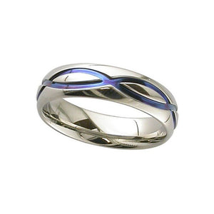 • A fabulous celtic knot zirconium wedding ring with a dome shaped profile (pictured with anodized colour blue). The colour is created by the amount of current supplied during anodisation.
