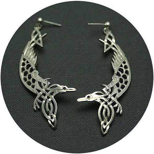 A breathtaking pair of Celtic earrings, with an extraordinary design that incorporates an appealing Celtic pattern. This absolutely incomparable jewellery is made from sterling silver by hand in Glasgow, Scotland by Mithril Jewellery.